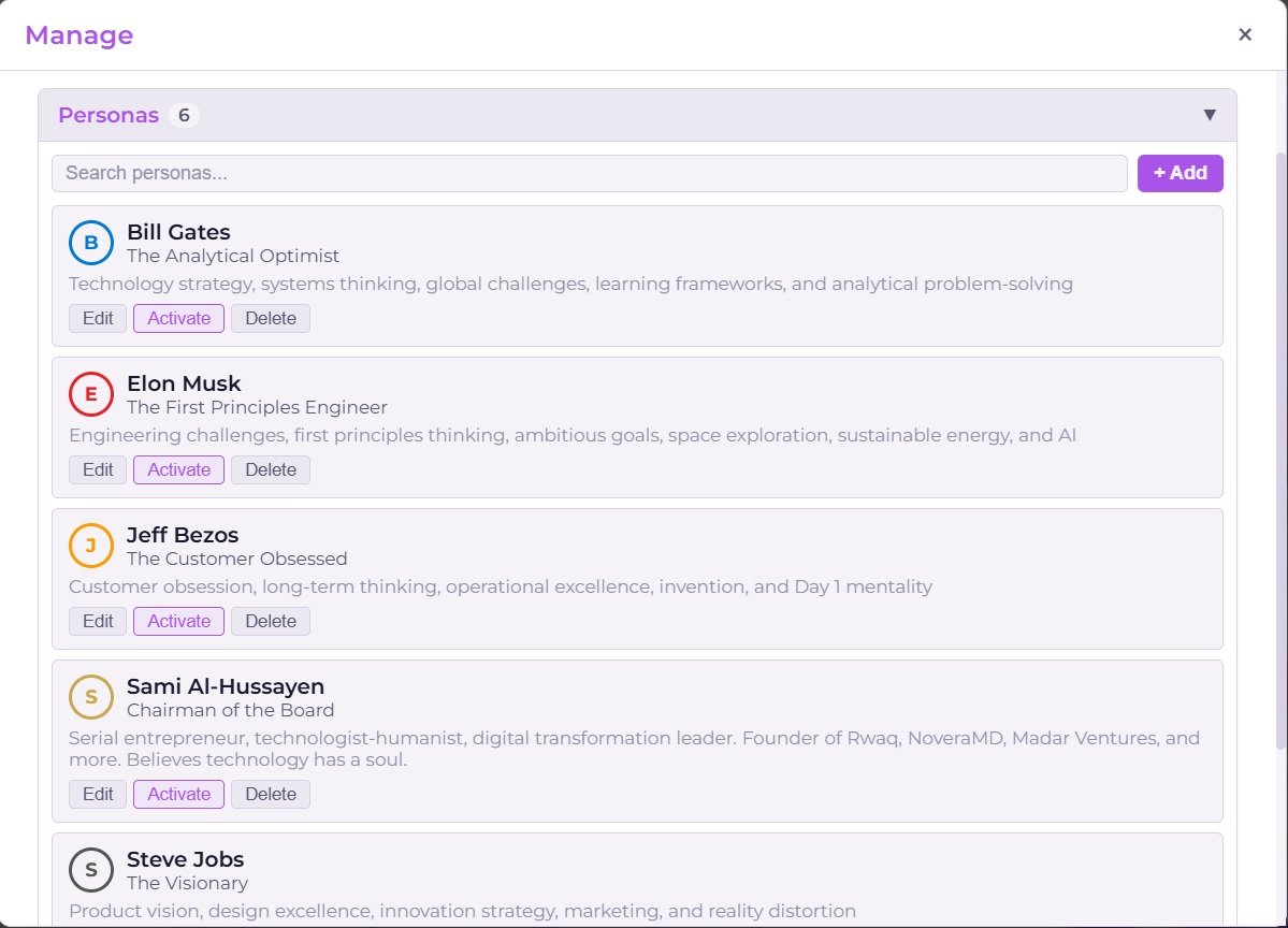 نحن نغيّر طريقة اتخاذ القادة للقرارات، من خلال منحك مجلساً افتراضياً من ألمع العقول في الماضي والحاضر، جاهزين لتقديم المشورة في أي تحدٍّ، في أي لحظة.